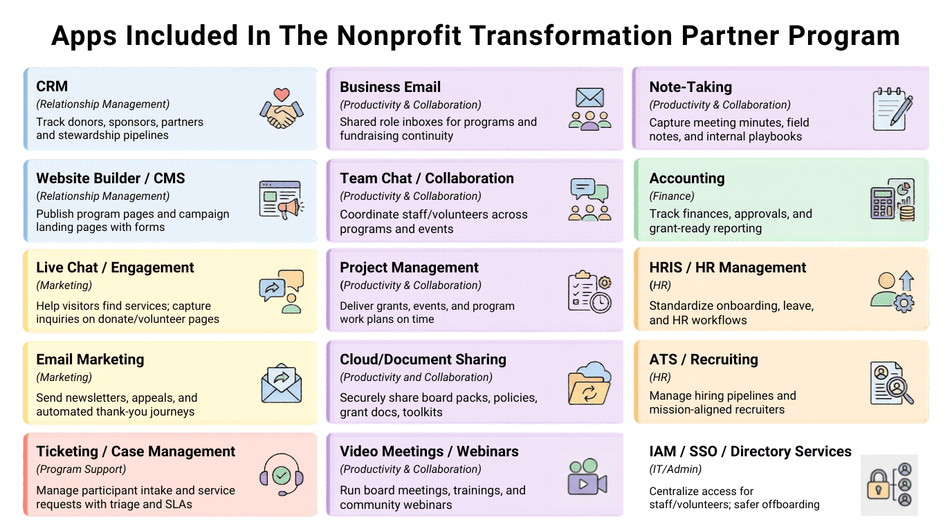 • Contacts & Communications - CRM, donor apps, helpdesks